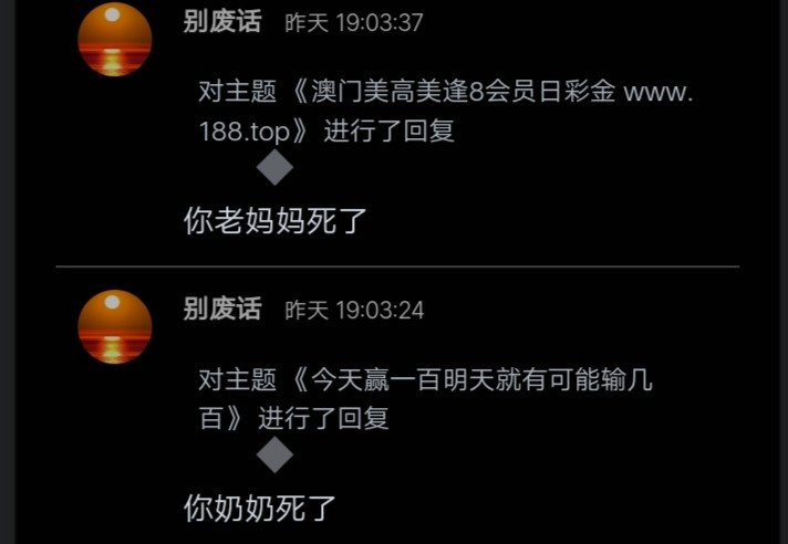 锦鲤: 尼玛,搬贴就搬贴,能不能发之前看看榜十头像有没有发过,像你这样搞,我也开始了。别什么贴都搬,隔壁都烂帖子了,你还发过来干什么?我都够水了,你比我还过分,我好歹都筛选几个合适的帖子发,你倒好隔壁来啥你发啥,来者不拒
