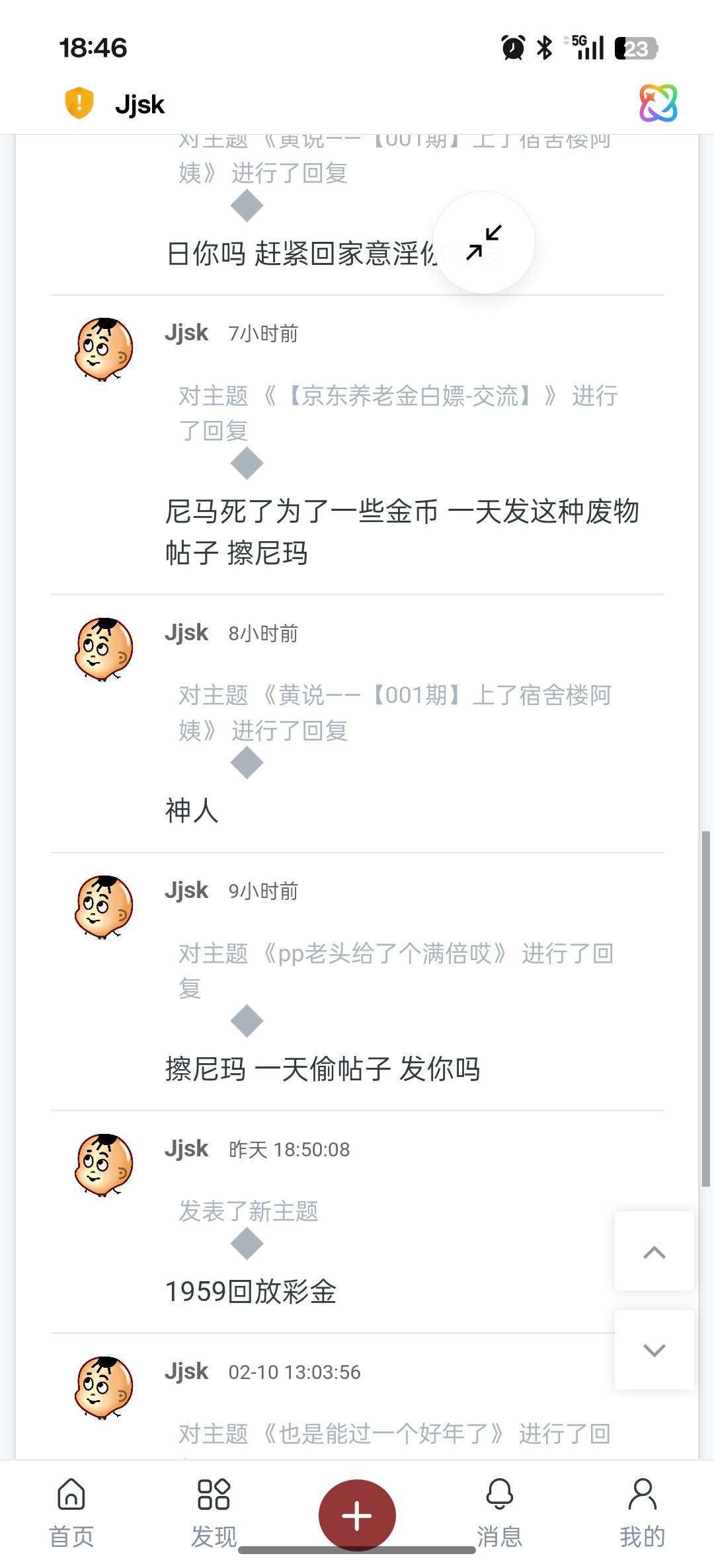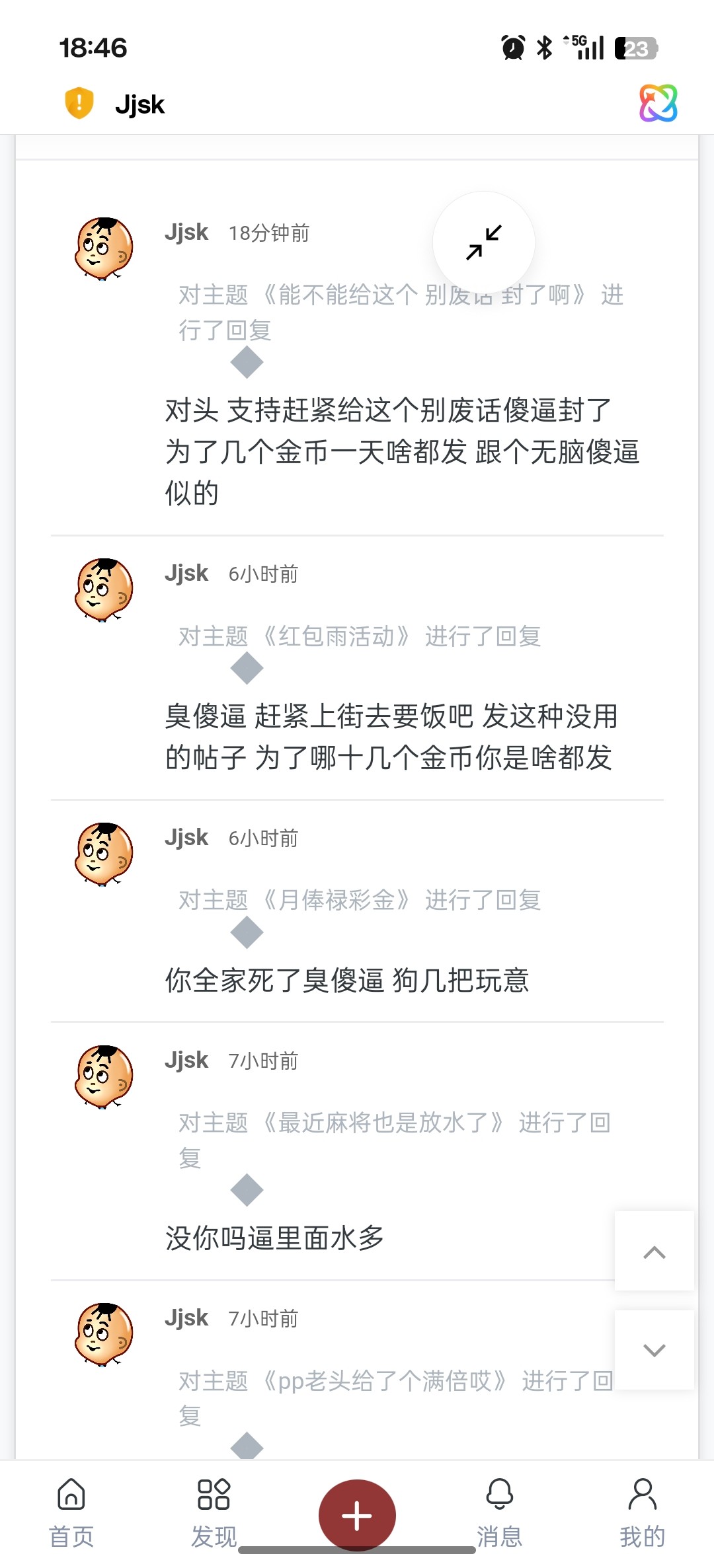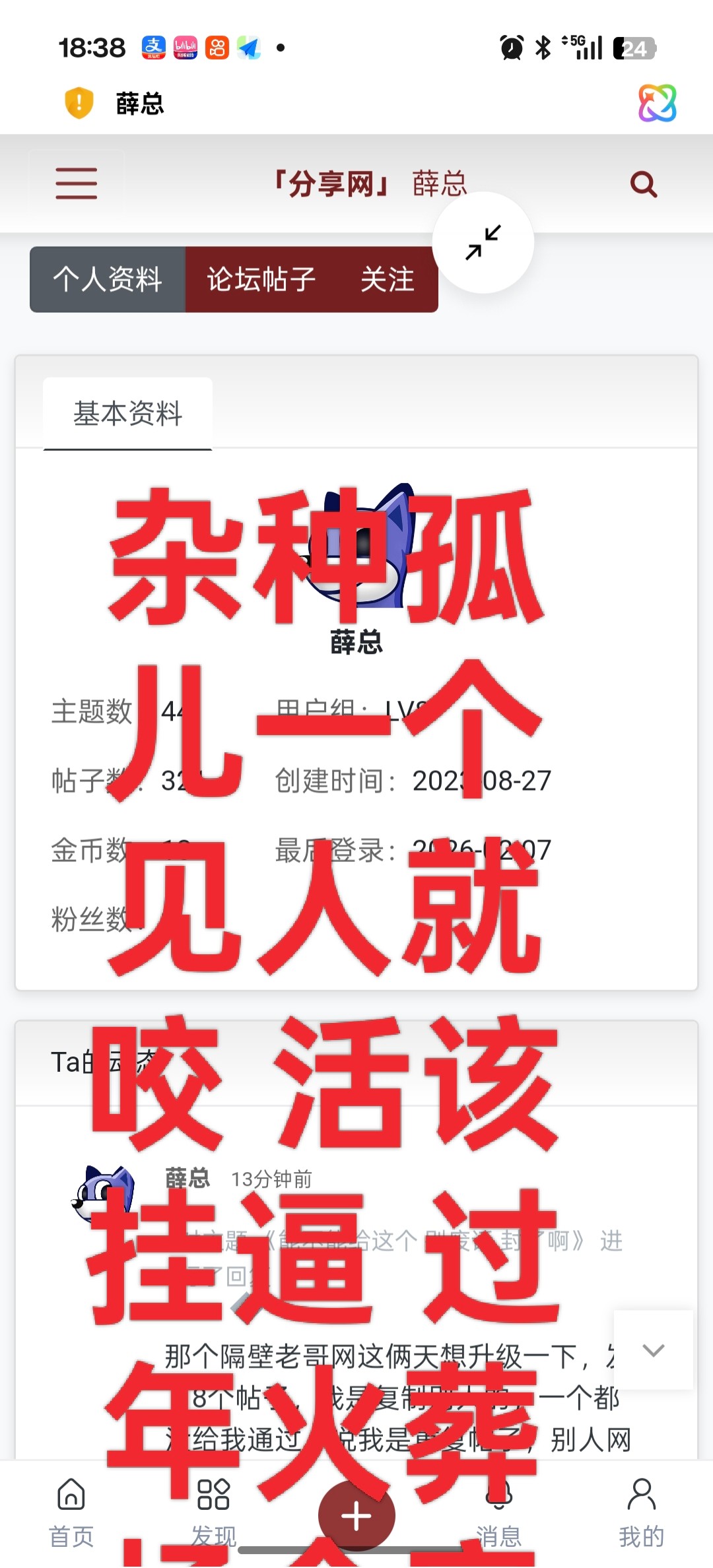 发的都是一些别人发过的东西一直重复发,还人人都有怎么不去死呢?满足跑火车说你这狗东西还不服气,不懂不要瞎逼逼人人都去曹尼玛还人人都有,你他妈脑残吧