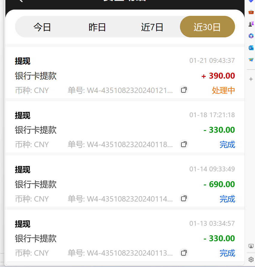 例如我: 黑台  提现没入