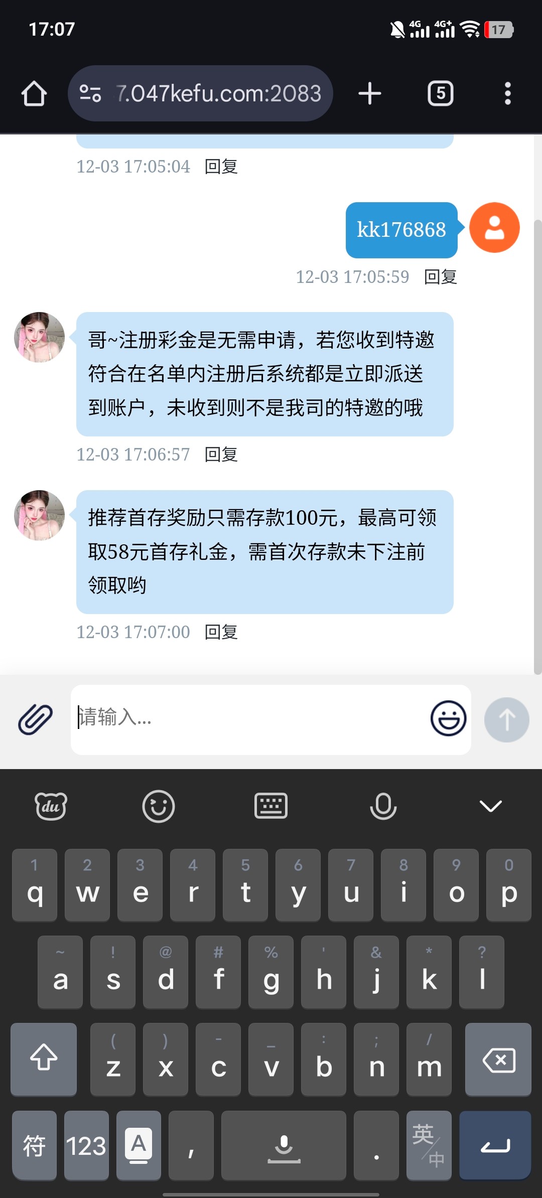 以前收到这种信息注册好问客服要就给,现在发截图客服给你发存送活动,两次了,另一个短信还写着,打够100可取,真扯