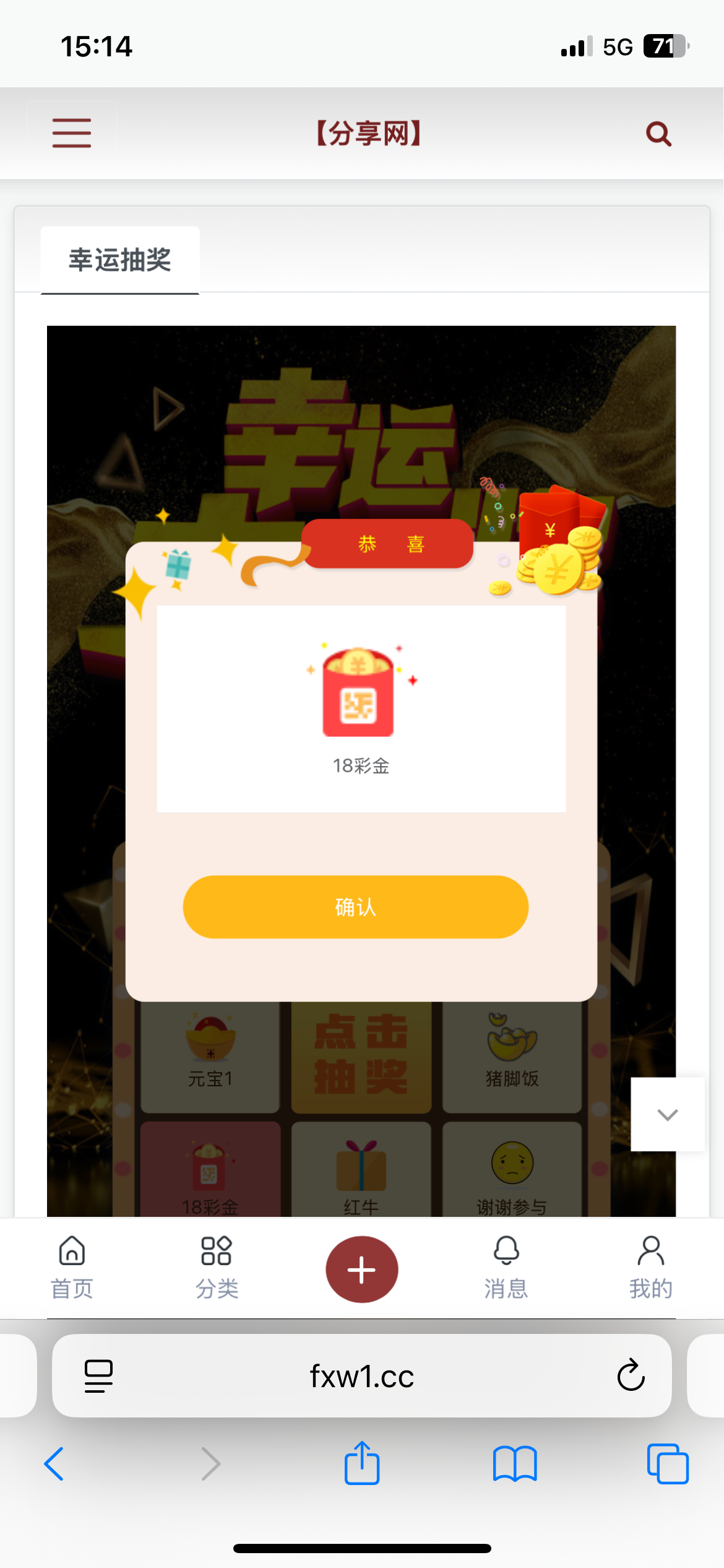 发截图了,中奖了,没收到1888金币