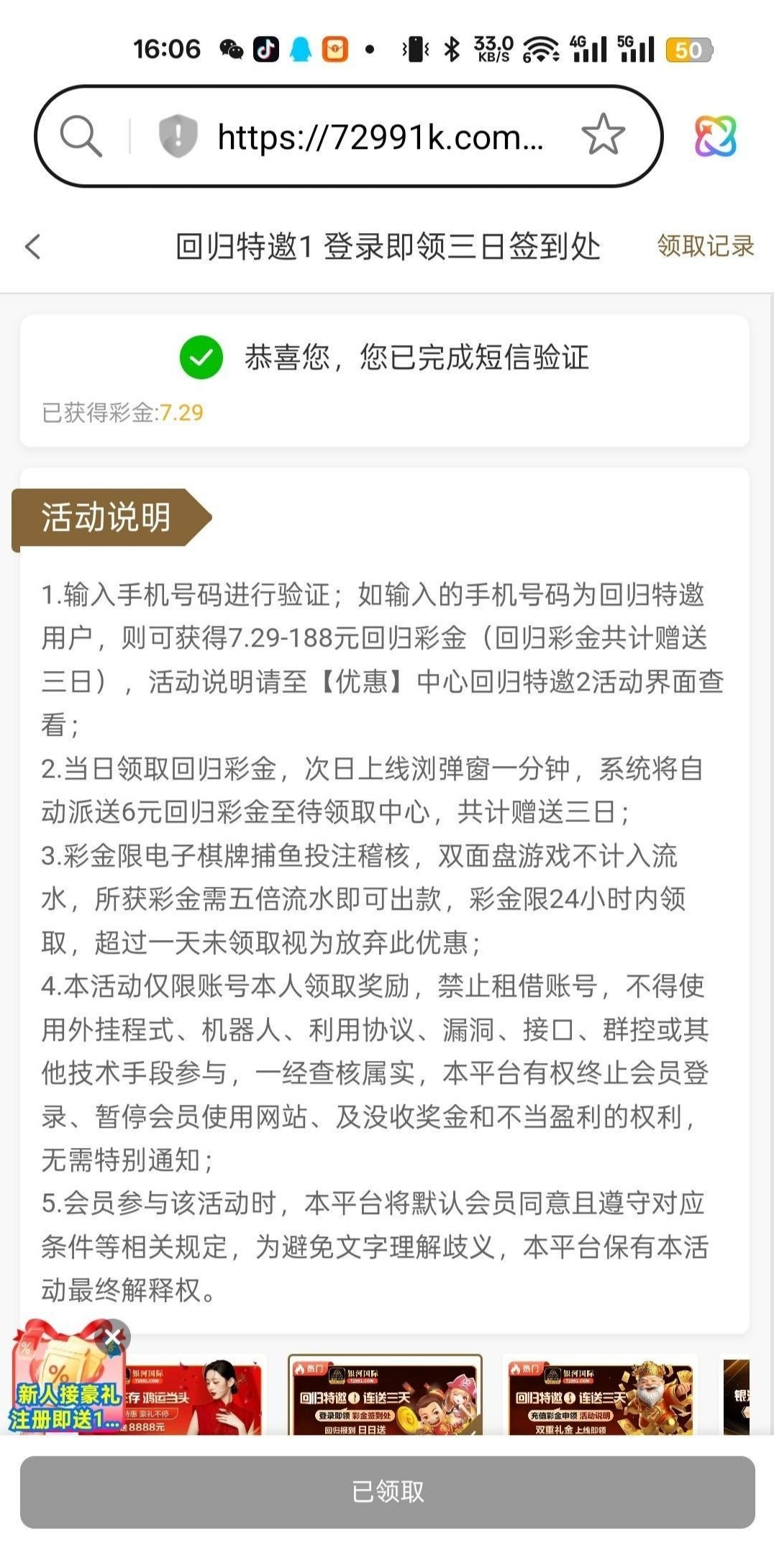 银河国际回归特邀送7.29,以前充值过可以看一下