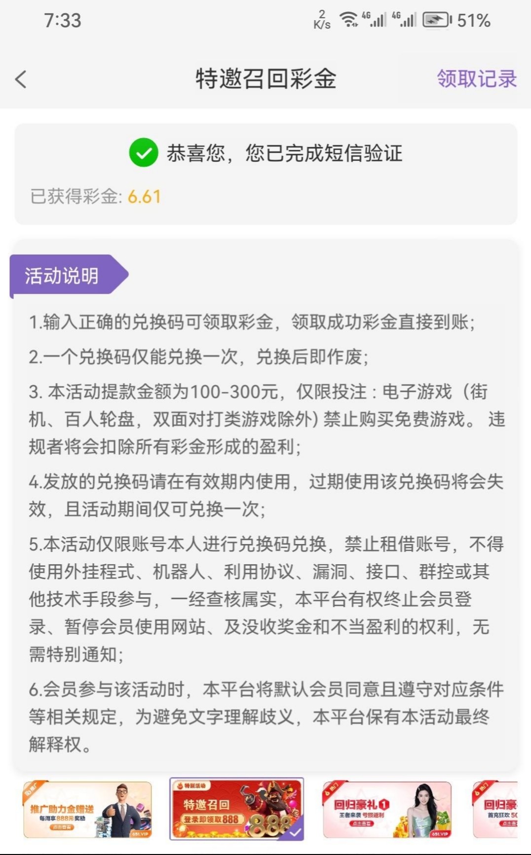 特邀召回,可以上号查一下是不是特邀 网址184365.cc 我领到了没打出来