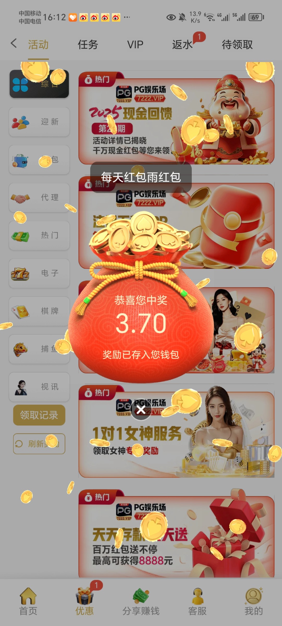 这台子有充值过的,每天有红包,我这2天枪红包出来200