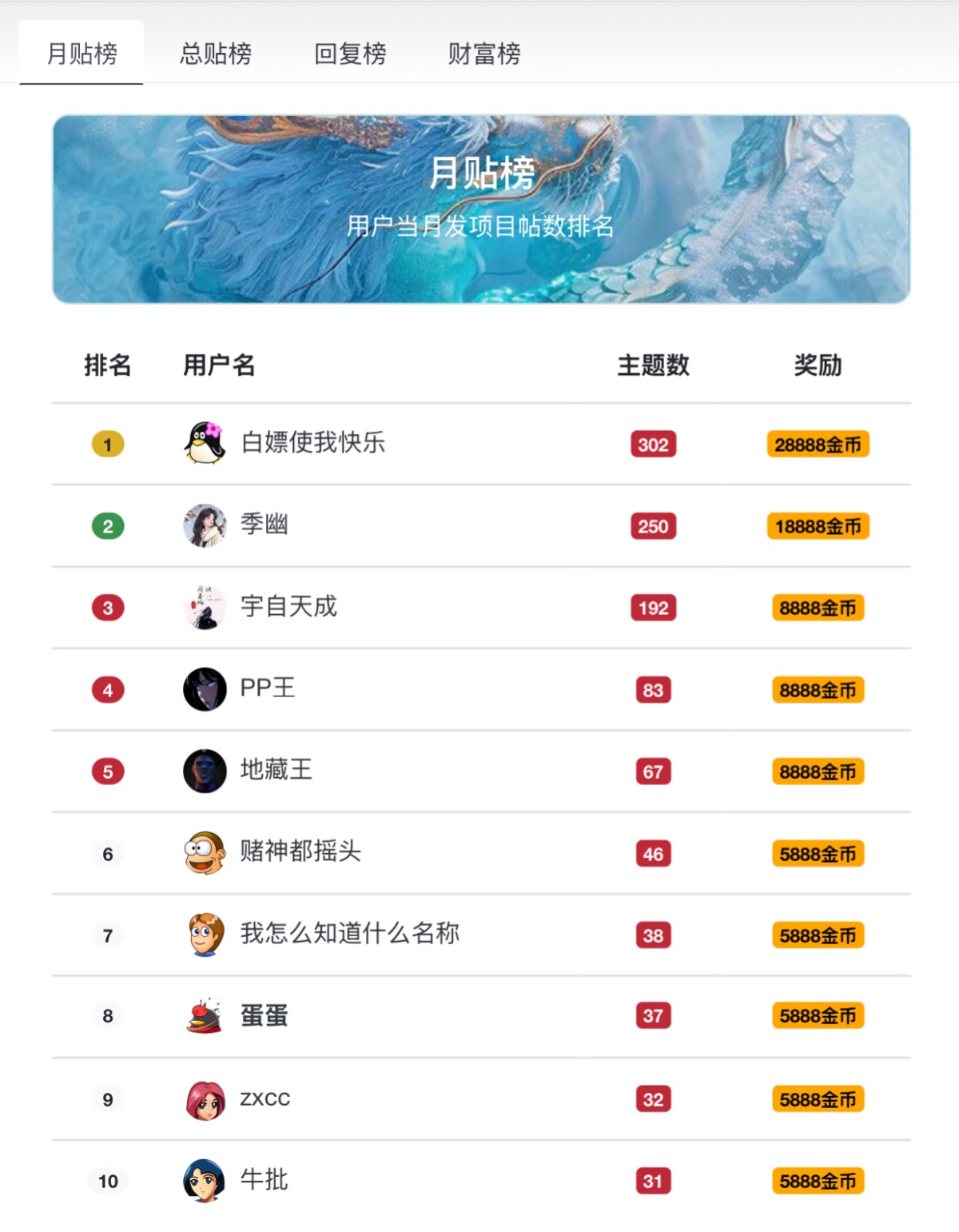 排行榜奖励