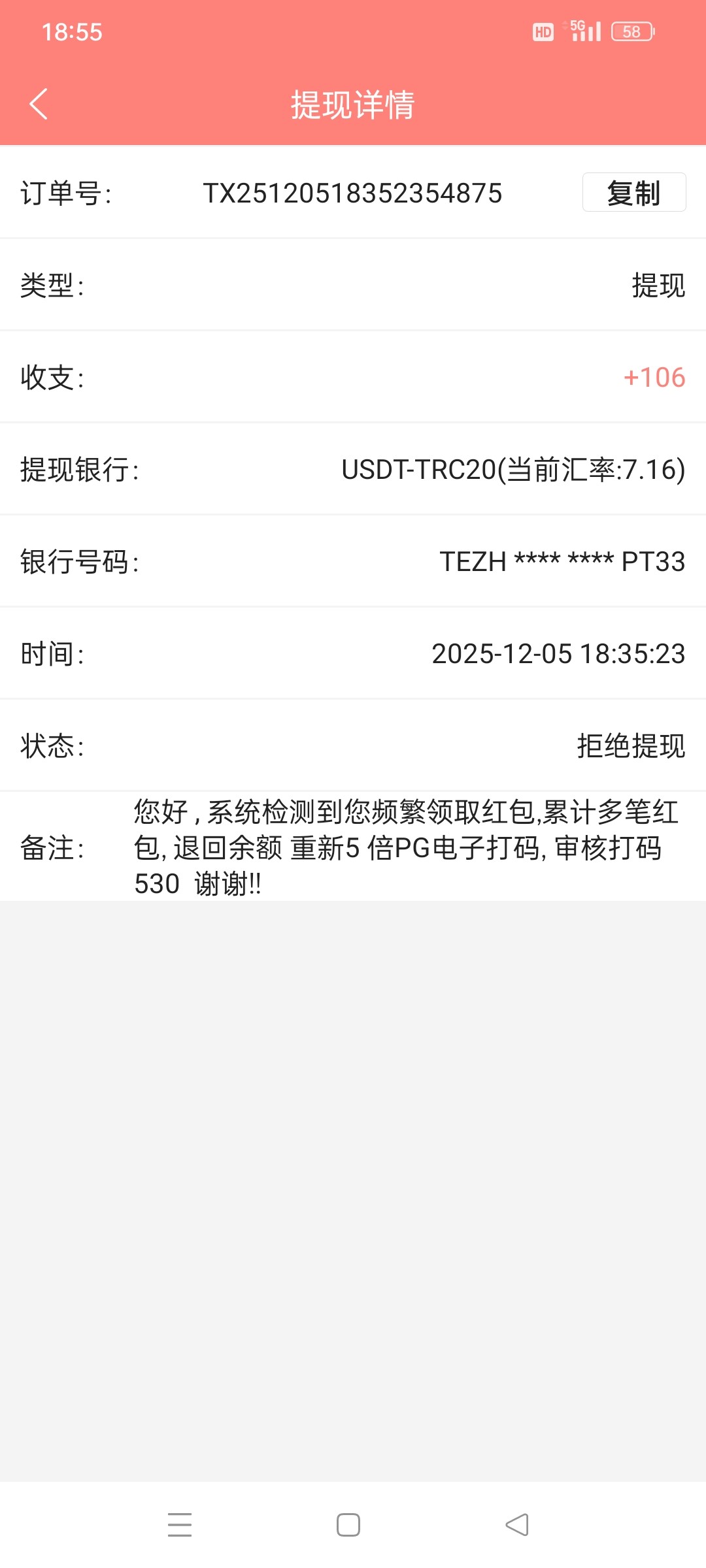 前段时间朋友玩668赢了2w多,我玩前前后后输了两千左右,因为没赢过钱,所以不充了,然后这段时间时不时抢一下红包看看能不能打起来,看到老哥打起来的也有好多,非常羡慕,我刚好抢了2块红包,然后打了半天一直在爆,爆了100准备提现,结果拒绝提现,罚水5倍打码,操他妈的668全家的大逼,死娘胎里面变畸形儿,不得好死的狗东西,退回来之后,一直杀一直杀,不像之前那么给了,然后输完了,就是搞心态,有点意思,668,精彩网,大家记住了,黑台,pg电子全部空转,充了就死,上次充了500,有一次,记得清清楚楚,连550都没有上过,一个免费没有,直接吃完,你妈逼你是饿了多少天啊?吃像这么难看?一点不吐?你说我赢钱倒是无所谓,你吃就吃了,我能接受,老子输钱故意搞我一个人?你怎么不去搞我朋友,草死你妈了的垃圾平台668精彩网,切记,黑台!