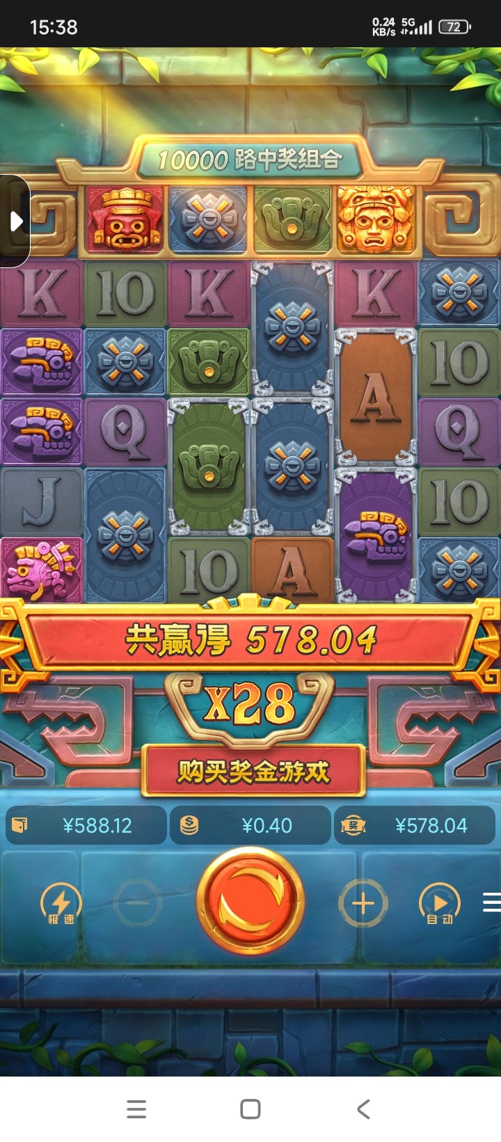 昨天在老哥网看见玩过了。剩30去买寻宝黄金城四毛,人生的第一次pg四毛千倍1445倍。这台子可以的不黑