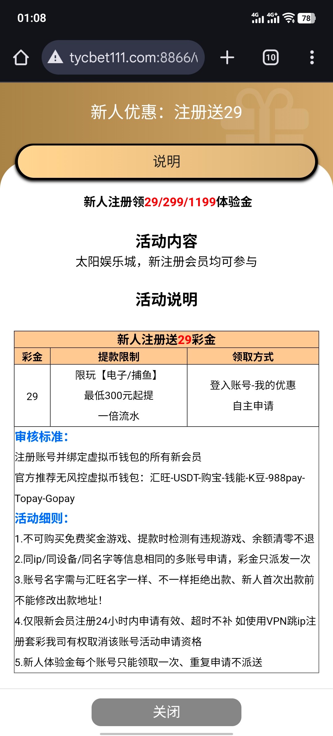 注册账号并绑定虚拟币钱包新会员自助活动里面自助申请29 满300提现