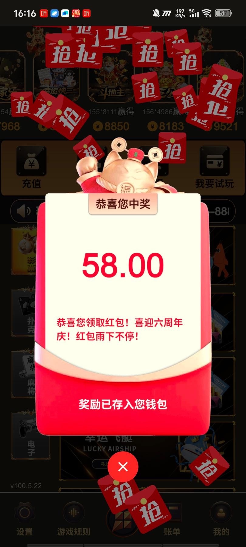 前几天接到电话领了58 以为是个黑台 送了三四天58 每次打到几百几千 都随便玩 以为出不了 昨晚的时候尝试提款 结果真提得了 提支付宝或者微信一个小时不到 就取消 换提钱包秒到一开始我还不信 提了两三次了 反正分逼没充 注册了特邀的才会有红包
